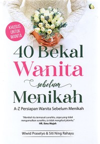 "40 Bekal Wanita Sebelum Menikah" karya Wiwid Prasetyo dan Siti Ning Rahayu merupakan sebuah panduan komprehensif yang dirancang khusus untuk mempersiapkan wanita menuju pernikahan. Buku ini menyajikan beragam aspek penting yang perlu diperhatikan oleh seorang wanita sebelum memasuki jenjang pernikahan, mulai dari persiapan spiritual, mental, hingga persiapan praktis.